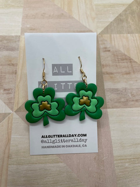 Bright green Shamrock dangle earring in multiple colors