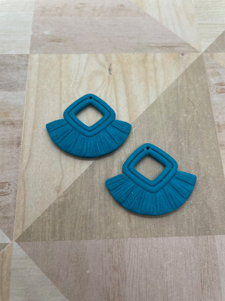 Sarah with an H-Boho faux macrame fringe dangle earrings